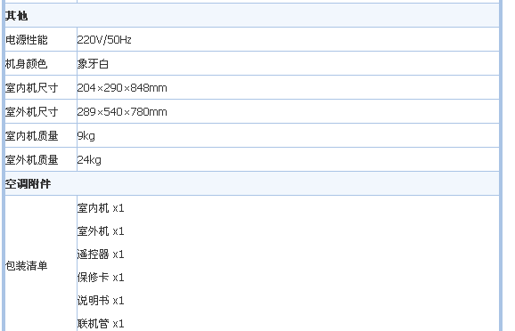 配套电器:空调