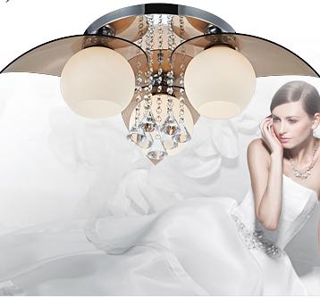 现代水晶灯三头玻璃吸顶灯客