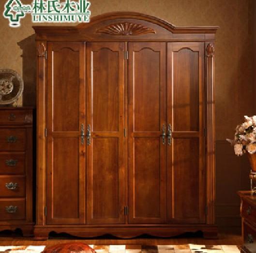 古典美式四门衣柜 松木实木