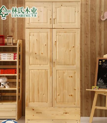 现代中式全实木衣柜 儿童松