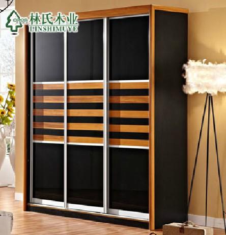 中式实木推拉门整体大衣橱
