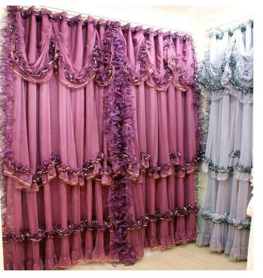 窗帘高档客厅卧室紫色蕾丝窗
