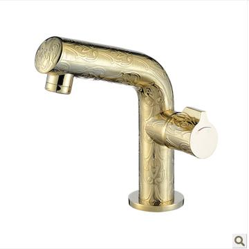 全铜 镀金面盆水龙头 单孔