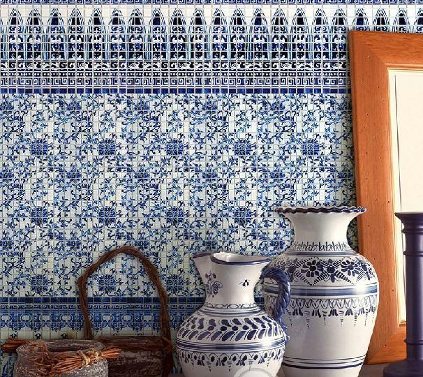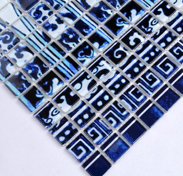豆豆青花瓷水晶玻璃马赛克蓝