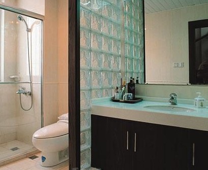 4. 卫生间隔断墙面材料:浴室的墙壁面积最大,须选择防水性强,又具有抗腐蚀与抗霉变的材料。容易清洗的瓷砖、大理石、马赛克等花色多,可拼贴丰富的图案,且光洁平整易干燥,是非常实用的壁面材料,但要注意与地面材料色彩相统一。