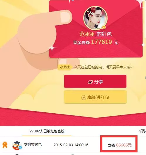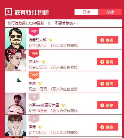 昨天发了微博红包红利的文章,到了今天,48小时间,我已经做到了20万活跃粉丝的增加,红包充值超过19万(真金白银),战胜了包括范冰冰、姚晨、TFboy等当红明星,值得一提的是,范冰冰等明星均获得了支付宝充值的66666大红包,而我的红包完全是粉丝自发充的。
