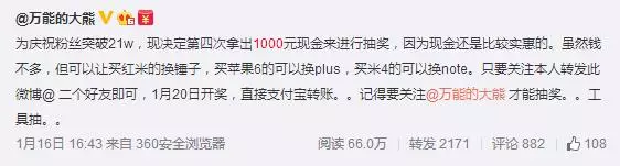 看看同样抽奖的条件,粉丝只有21万时的效果。增长了差不多10倍,而且只是第一天。