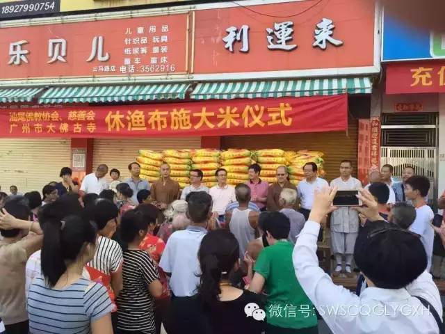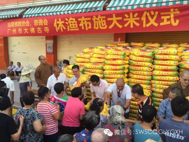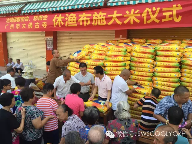 15年7月2日,汕尾市佛教协会、市佛教慈善功德会、广州市大佛寺在市区举行南海休渔期困难渔民家庭派发大米活动。本次活动共派发1300多包大米,慰问1000多家户贫困户。